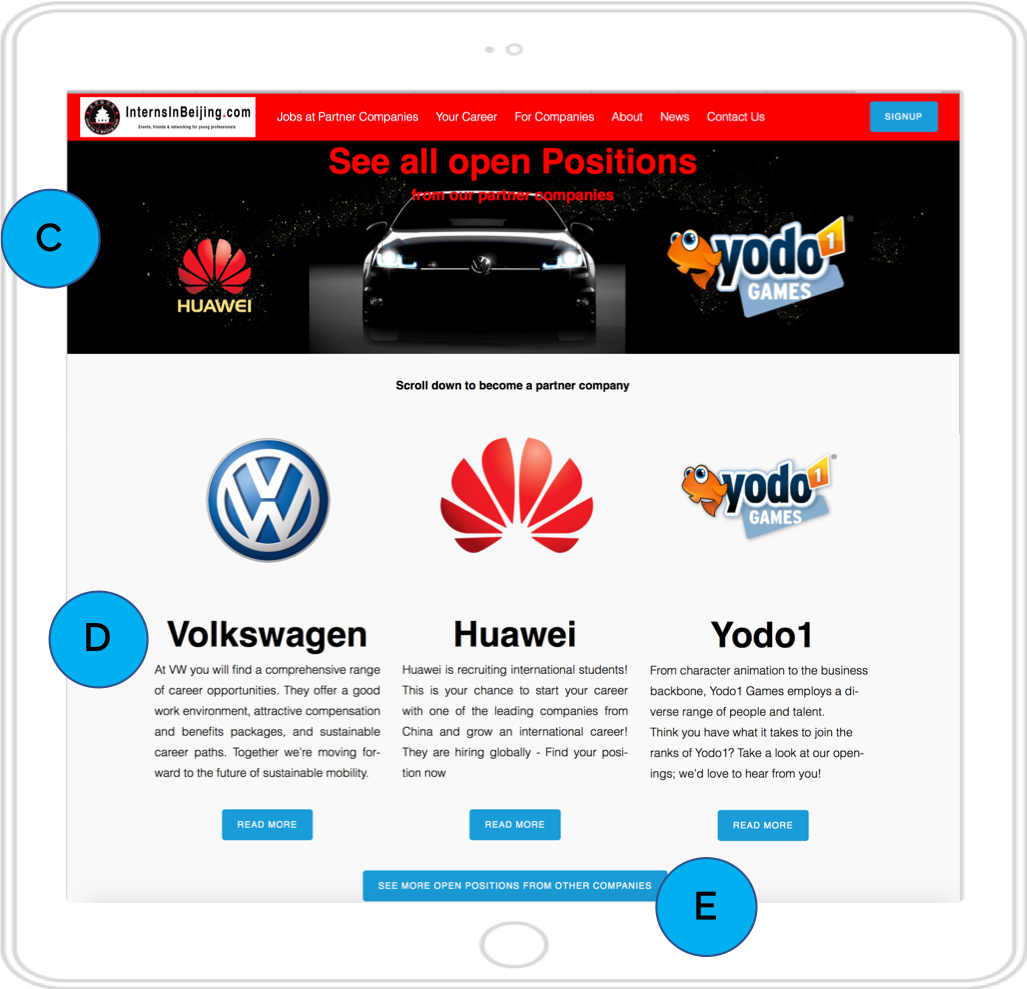 Become a partner company and benefit from many included features or simply promote your jobs/ internships with InternsInBeijing - all jobs on our website are also featured on our Wechat account.